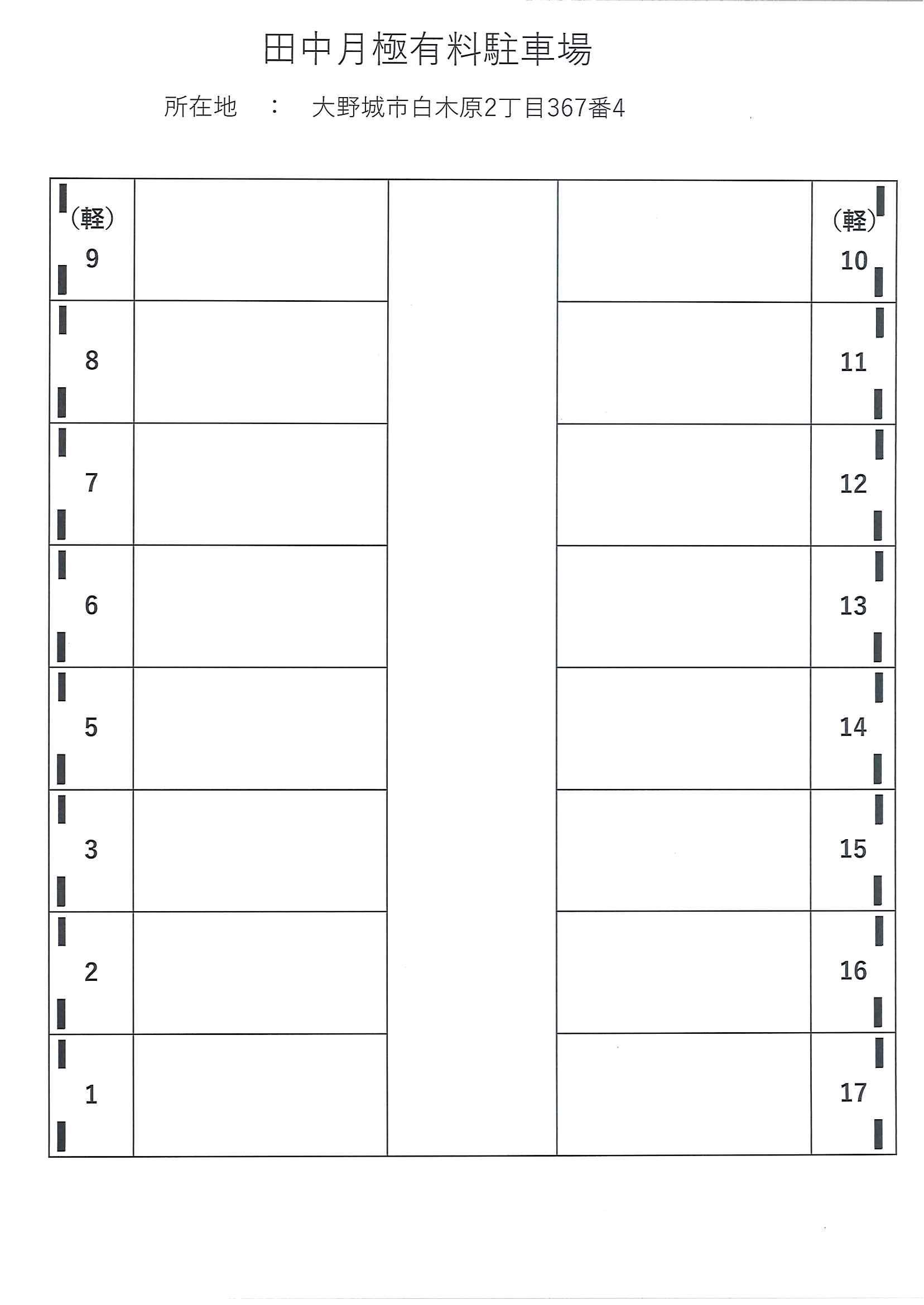 | 駐車場名称 | 田中月極有料駐車場 |
