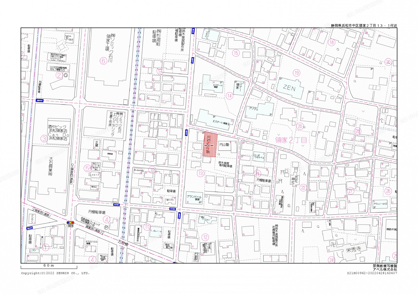 | 駐車場所在地 | 〒430-0852 静岡県浜松市中央区領家2丁目318-1 |